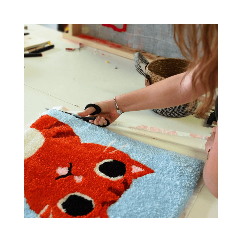 atelier de création et d'initiation au tufting à Lagny-sur-marne dans le 77 où vous serez guidés par Clarissa Vasté pour réaliser de vos propres mains une tapis en tufting.